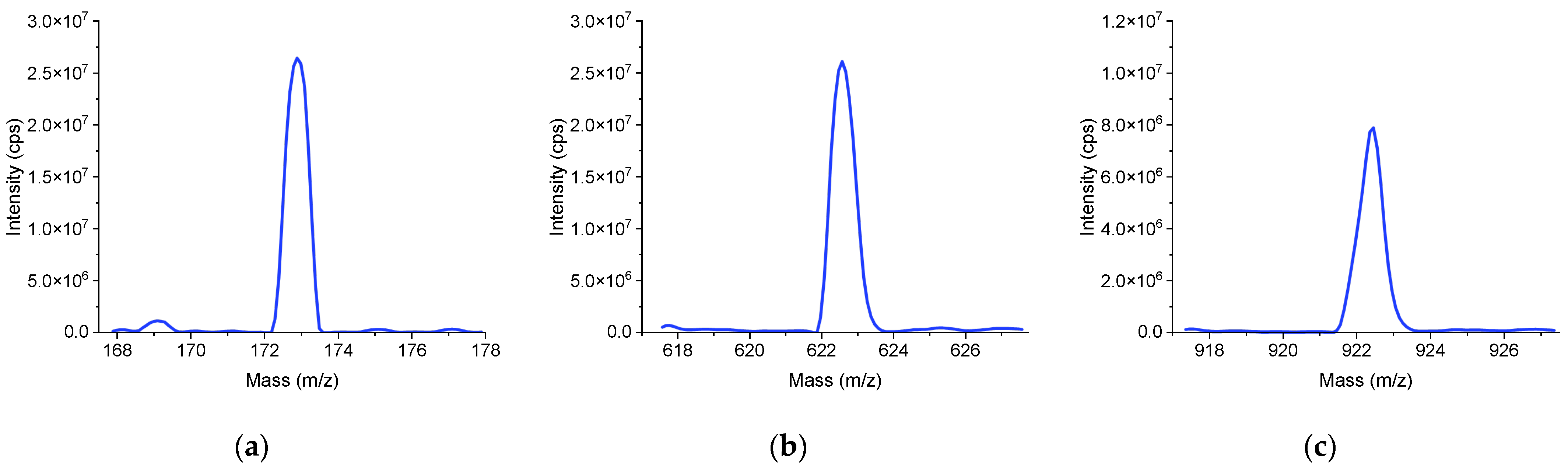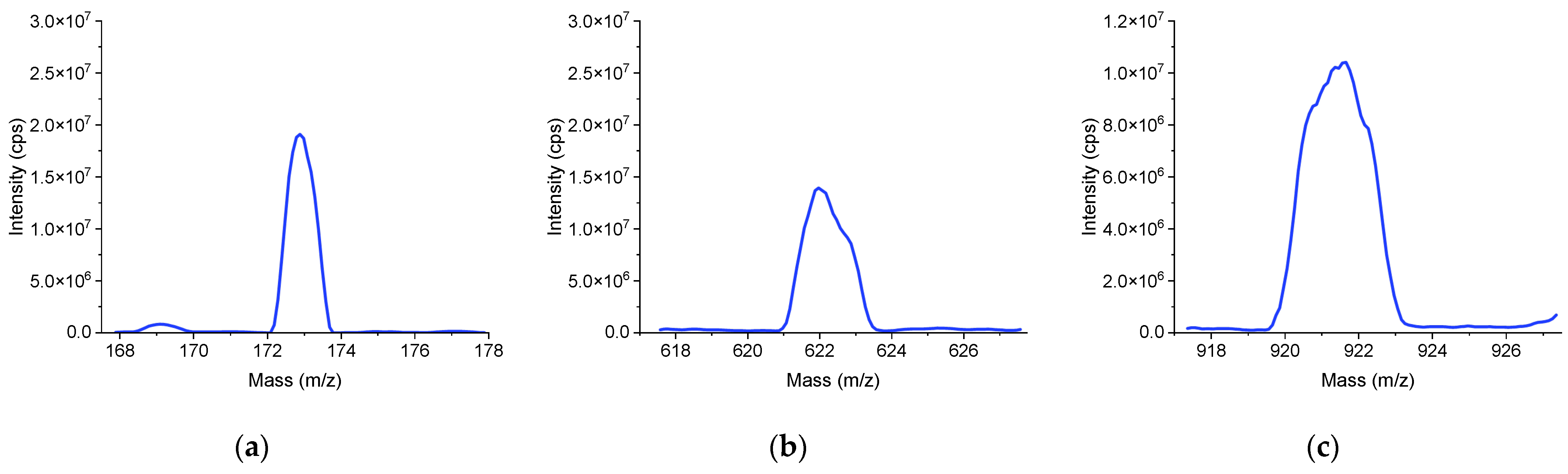 | No. | Intensity at m/z 172.88 (cps) | Intensity at m/z 622.57 (cps) | Intensity at m/z 922.36 (cps) |