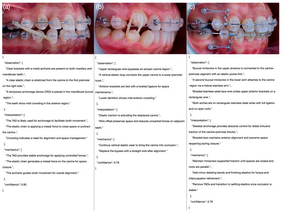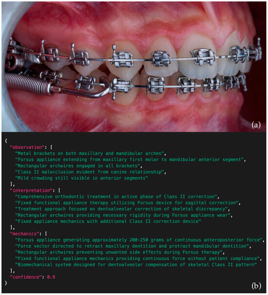 Recent advances in Multimodal Large Language Models (LLMs), a specialized subset of Machine Learning, have enabled AI systems to process not only textual but also complex visual inputs, including high-resolution intraoral photographs [21,22]. When accessed through publicly available application programming interfaces (APIs), these models offer significant potential in orthodontics, where visual information plays a central role in clinical decision-making. Their potential extends beyond orthodontics to the wider dental field, as highlighted by Puleio et al. [23], who systematically reviewed the clinical, research, and educational applications of ChatGPT (versions 3.5 and 4) and related LLMs in dentistry. The authors reported that generative and multimodal models are increasingly being adopted for diagnostic support, patient communication, academic writing, and teaching. In orthodontics, they emphasized the importance of structured, domain-specific prompting to improve reliability and interpretability of AI-generated outputs. Incorporating such cross-disciplinary evidence underscores the broader relevance of LLMs within dental innovation and provides contextual grounding for the present study. LLMs can assist clinicians by directly interpreting biomechanical features from image content alone, without requiring patient history, demographic data, or radiographs. This capability may help identify orthodontic appliances, evaluate active treatment mechanics, and detect errors in force application. As a result, structured model outputs have the potential to enhance diagnostic consistency, reduce inter-examiner variability, and support less experienced practitioners in making more accurate clinical decisions.