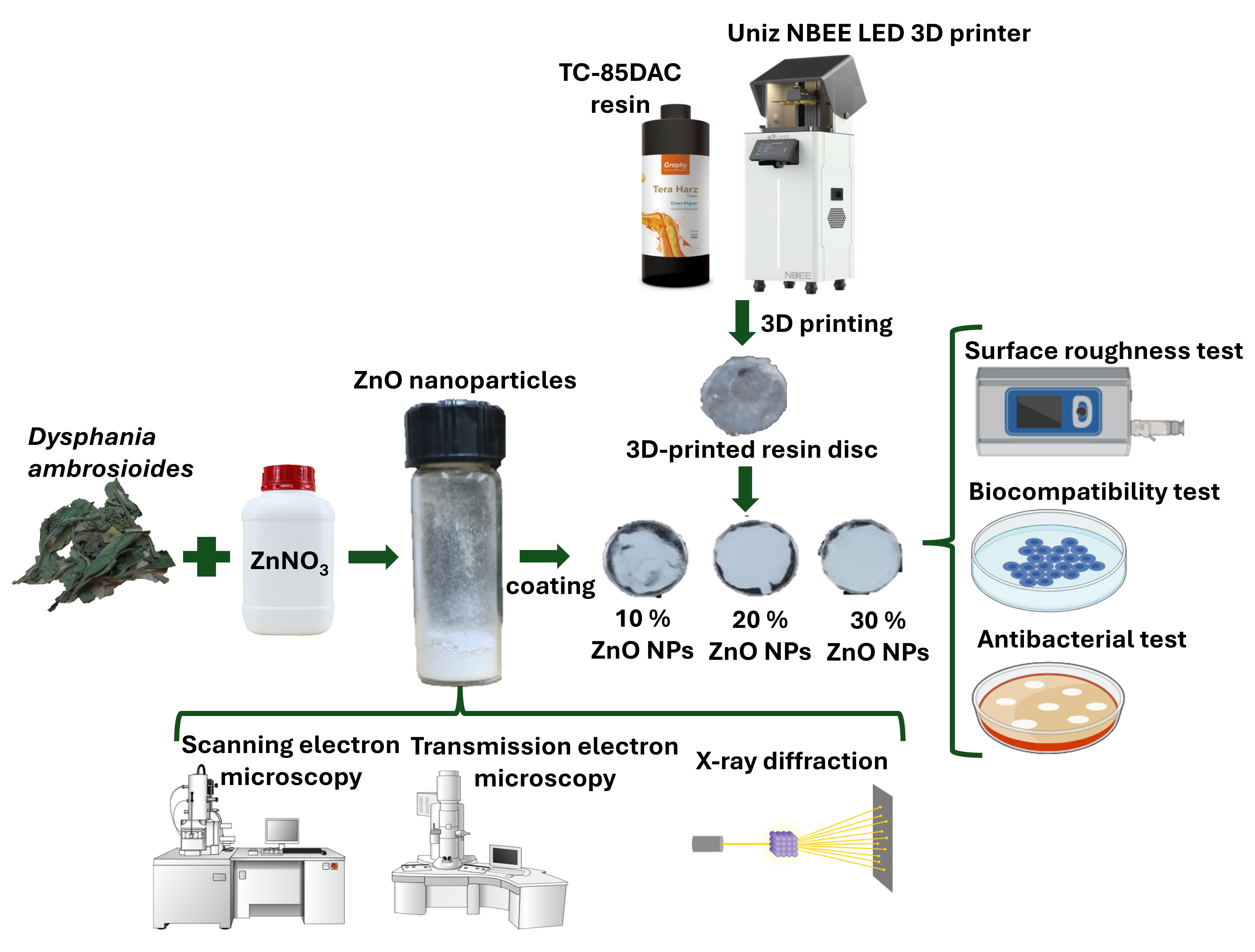 3.2. Design, 3D Printing of the Resin Disc, and Coatings with ZnO NPs