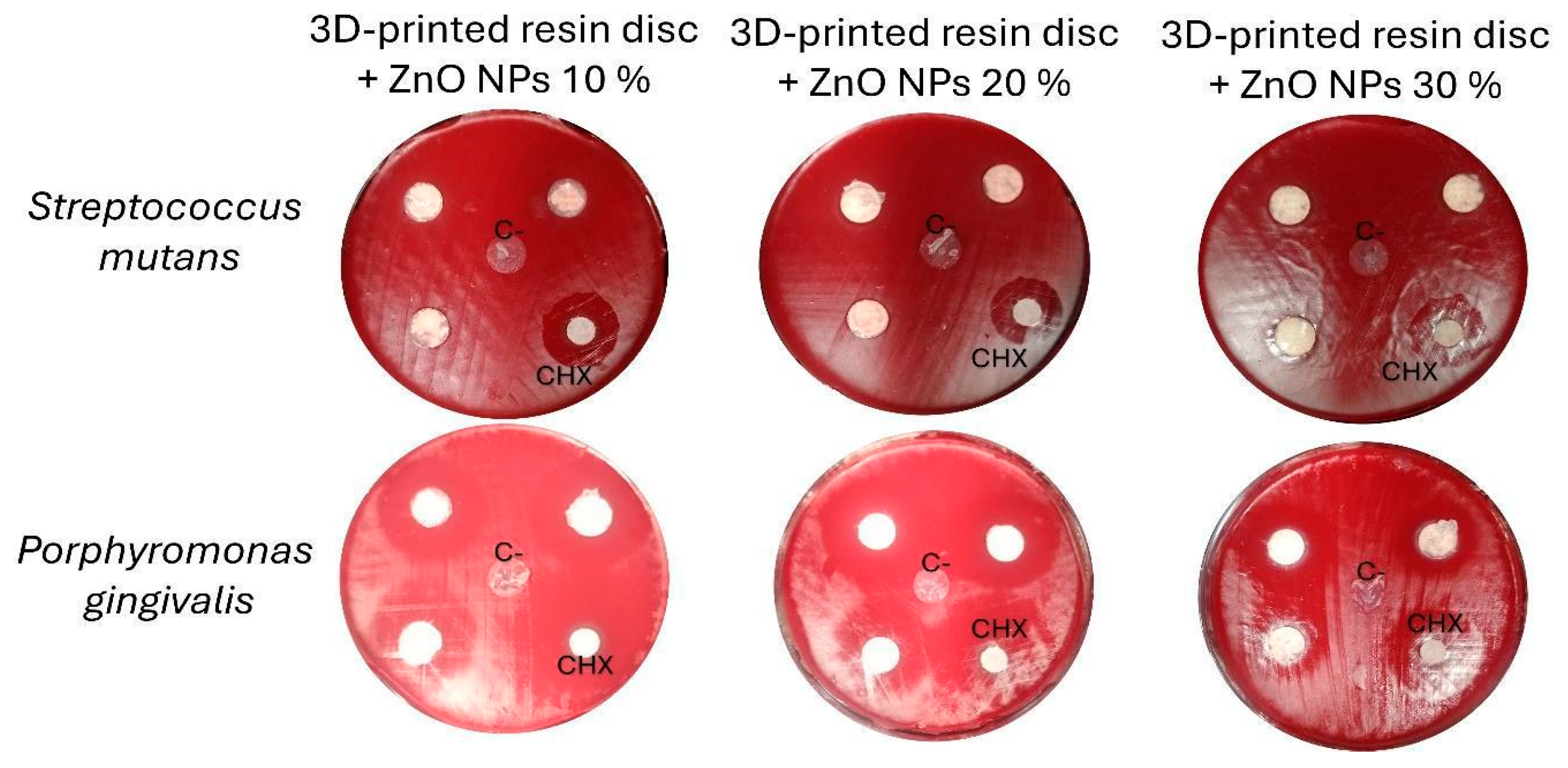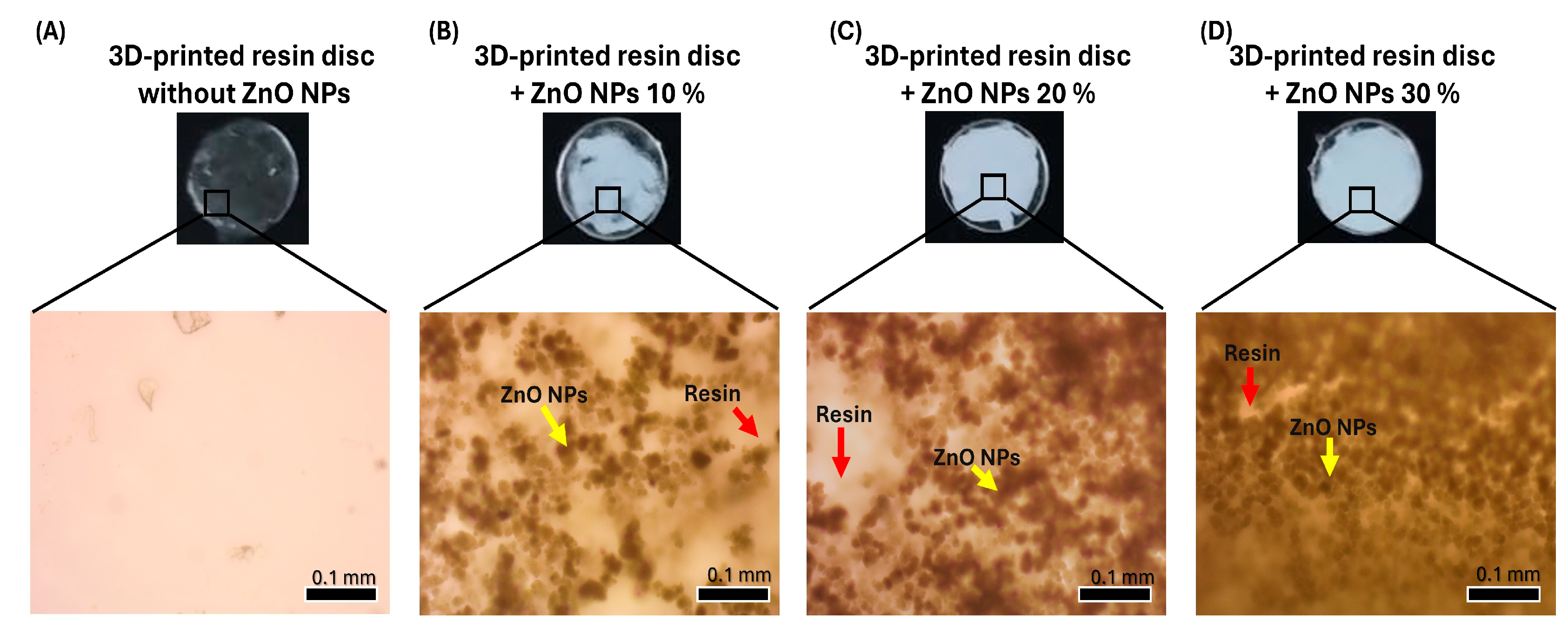 2.4. Coating the 3D-Printed Resin Disc with ZnO NPs