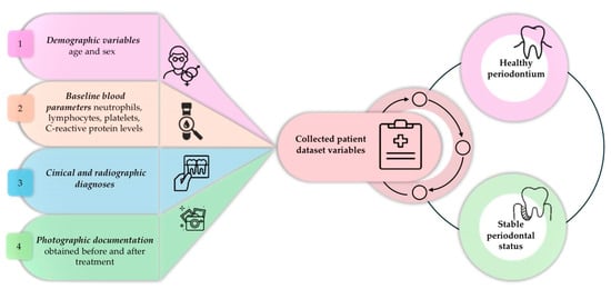 Subsequently, patients were divided into two groups based on periodontal status, and the extracted data from their records are summarised in Figure 2.