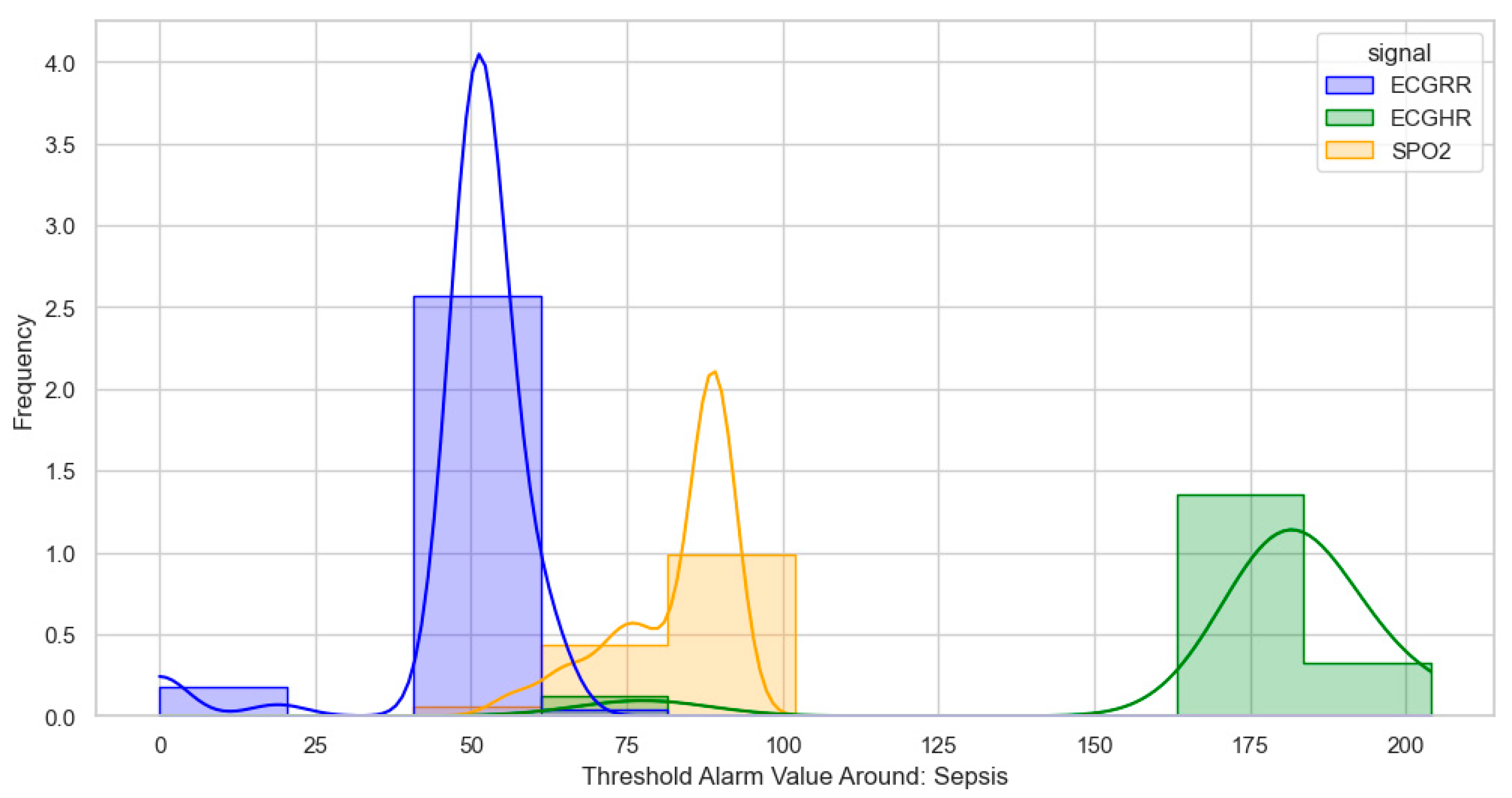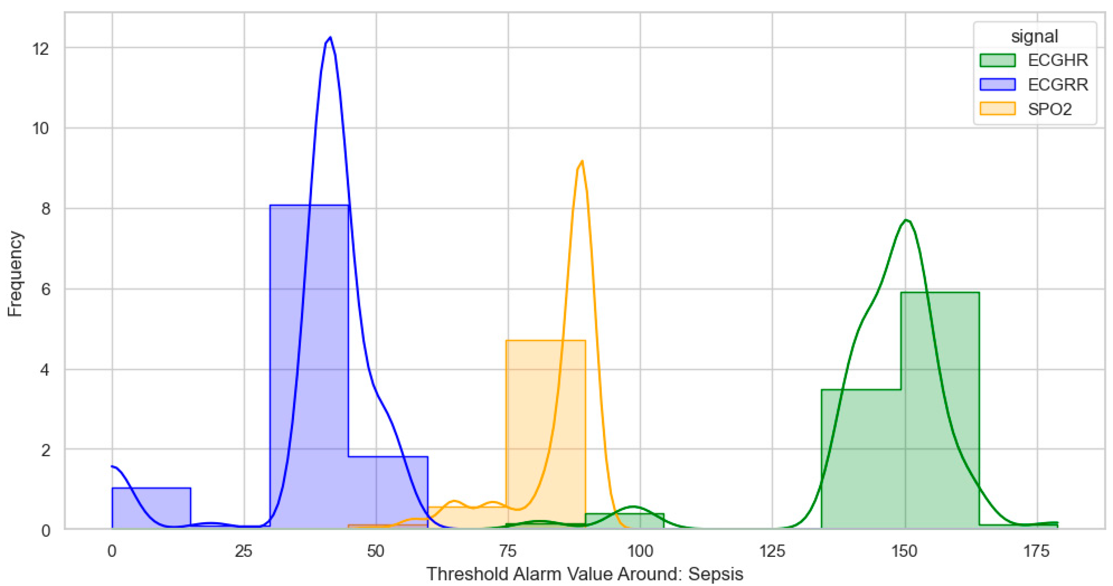 Distribution of threshold alarms for sepsis from GOAL3 threshold alarms.