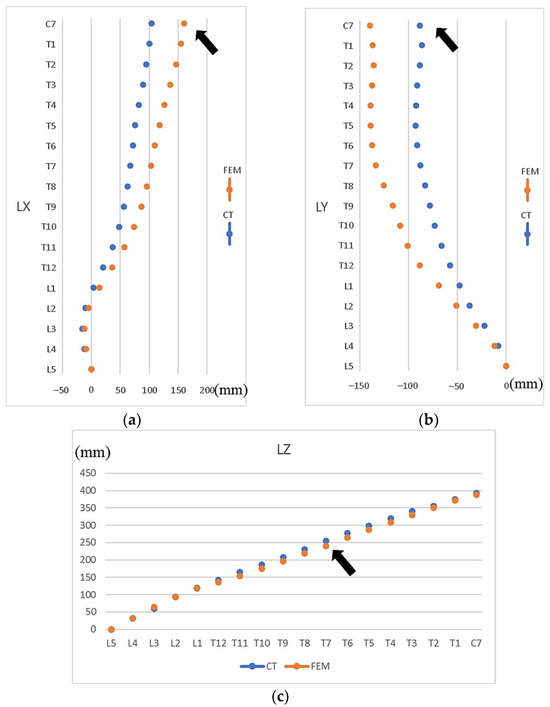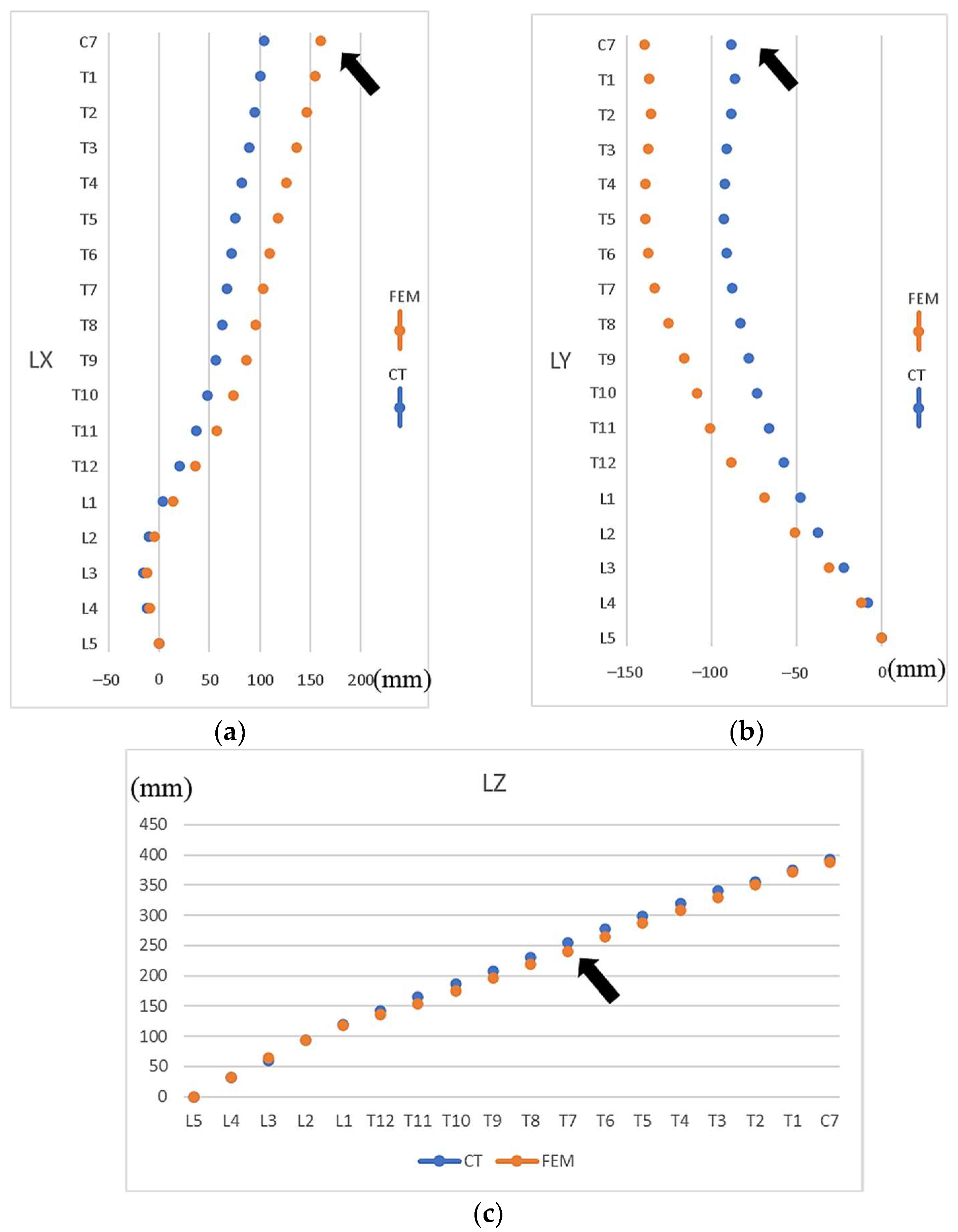 - X0, Y0, and Z0: original nodal coordinate in the vertebral body L5