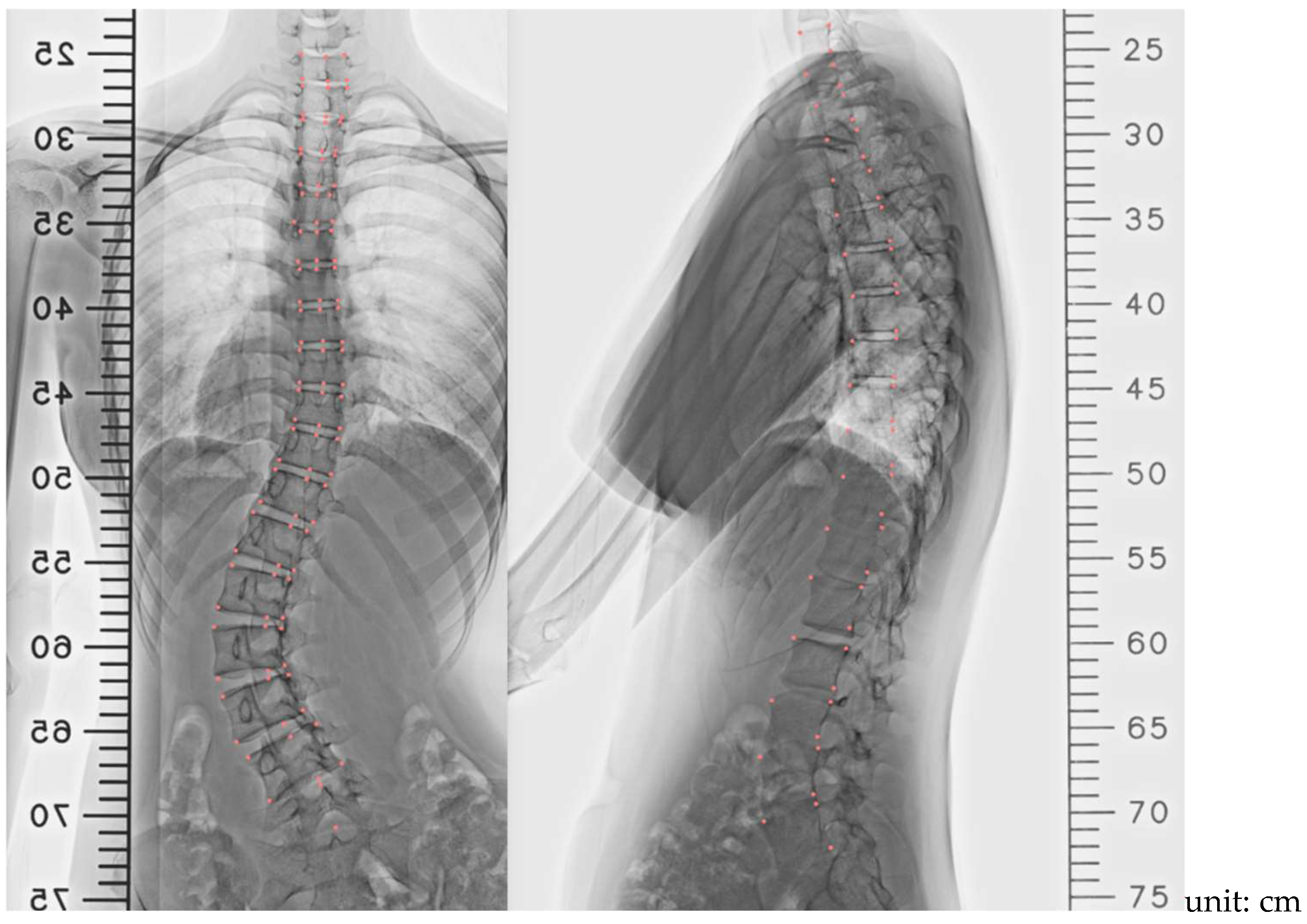 - d’Astorg, H.; Bourret, S.; Ramos-Pascual, S.; Szadkowski, M.; Le Huec, J.C. Comparison of Cobb angle measurements for scoliosis assessment using different imaging modalities: A systematic review. EFORT Open Rev. 2023, 8, 489–498. [Google Scholar] [CrossRef]