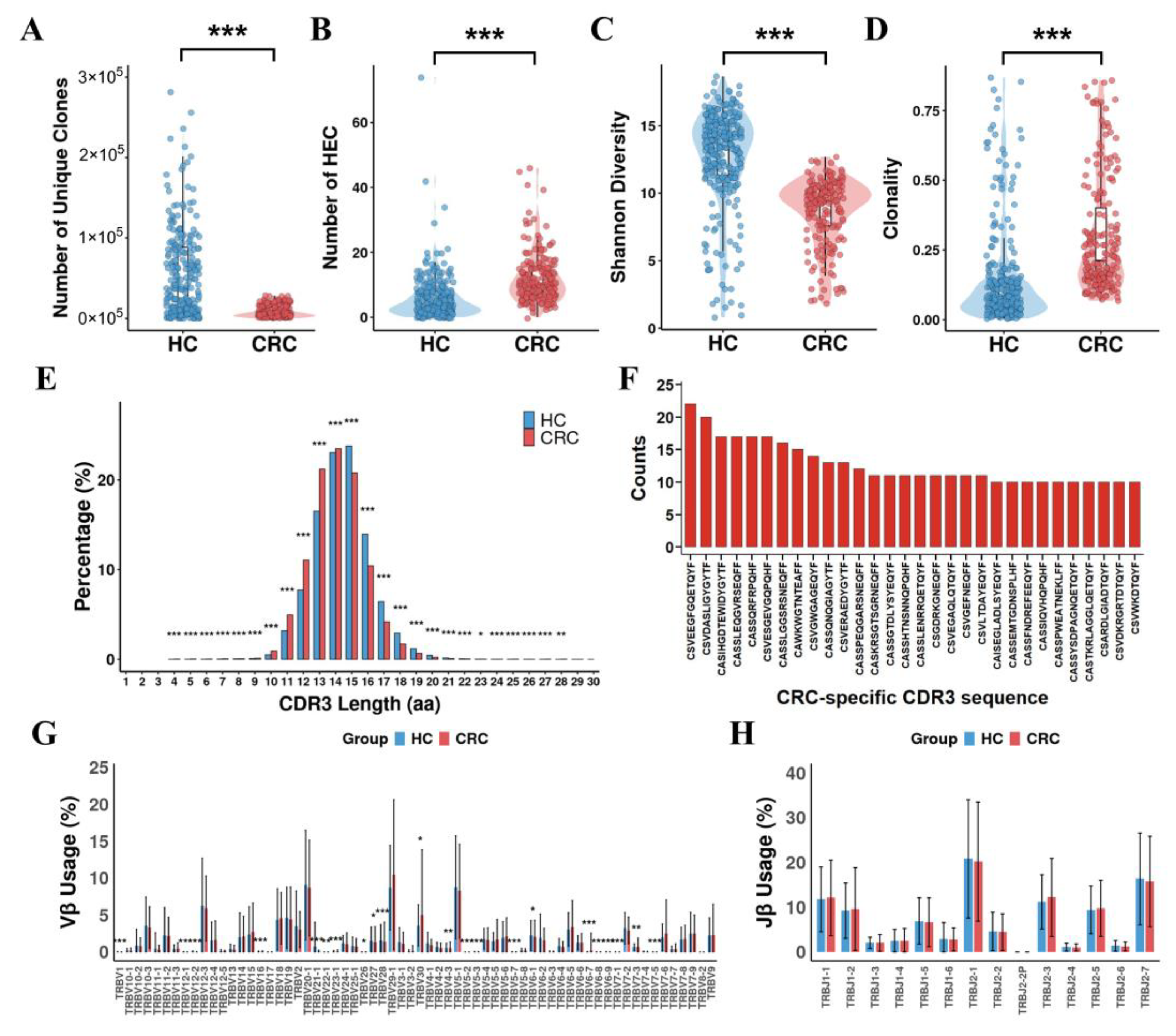 3.1. Comparison of TCR Repertoires Between CRC Patients and Healthy Controls