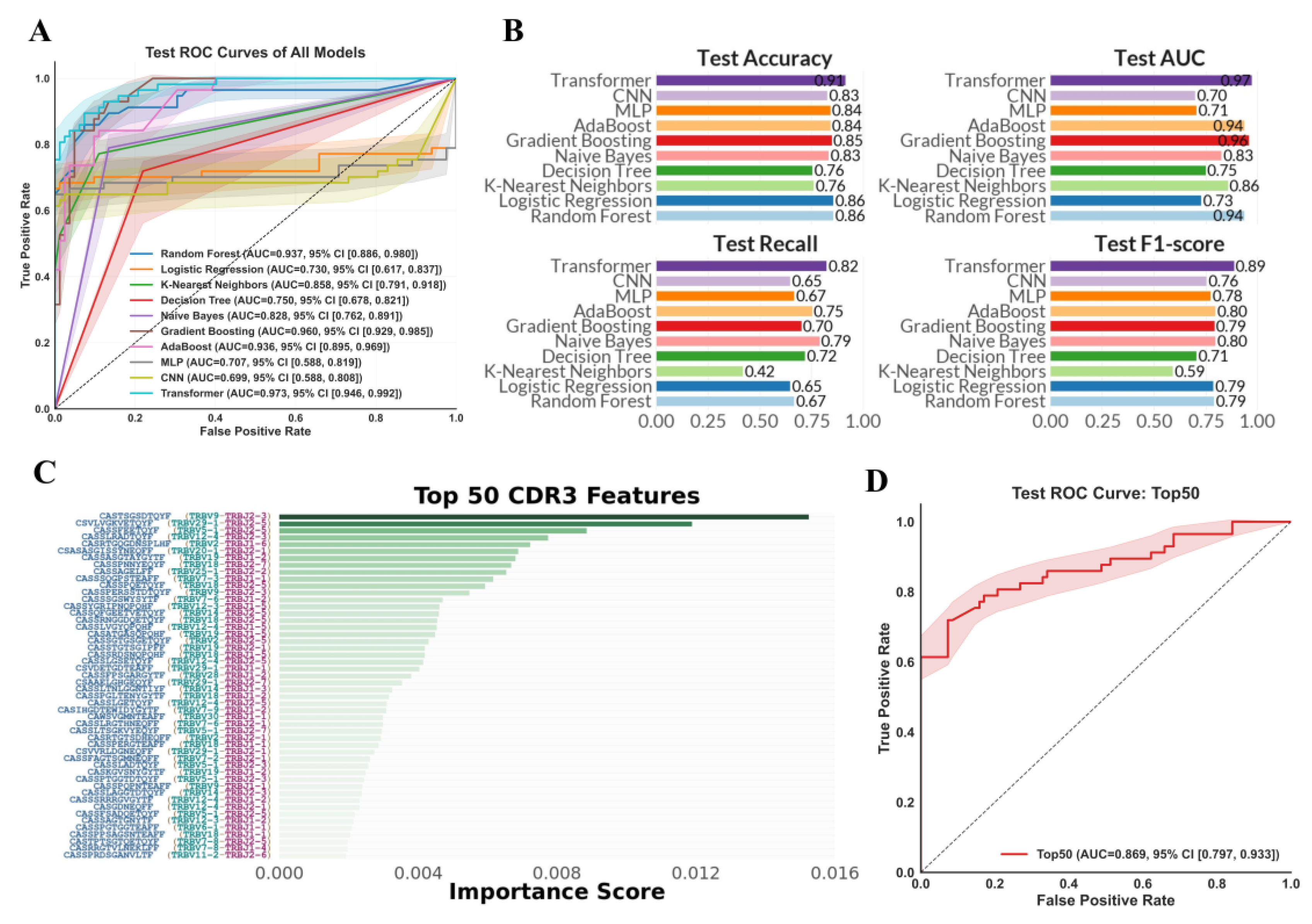 4.2. Key TCR Repertoire Features Underpin Robust Performance