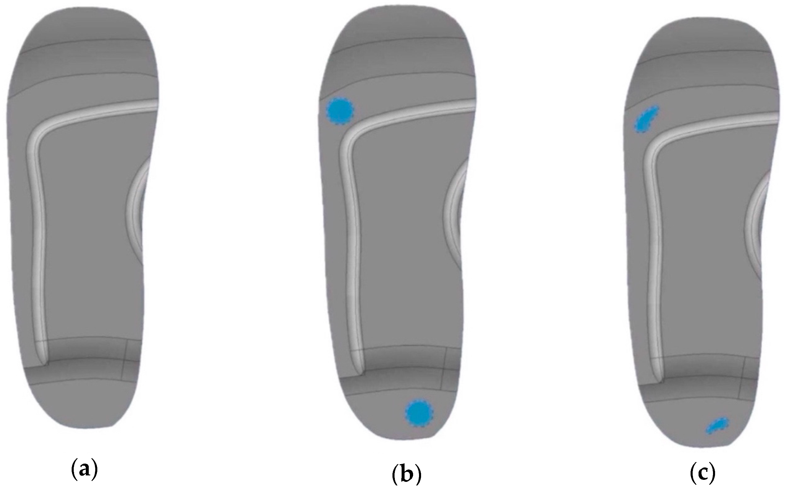 - Tang, L.; Wang, L.; Bao, W.; Zhu, S.; Li, D.; Zhao, N.; Liu, C. Functional Gradient Structural Design of Customized Diabetic Insoles. J. Mech. Behav. Biomed. Mater. 2019, 94, 279–287. [Google Scholar] [CrossRef] [PubMed]