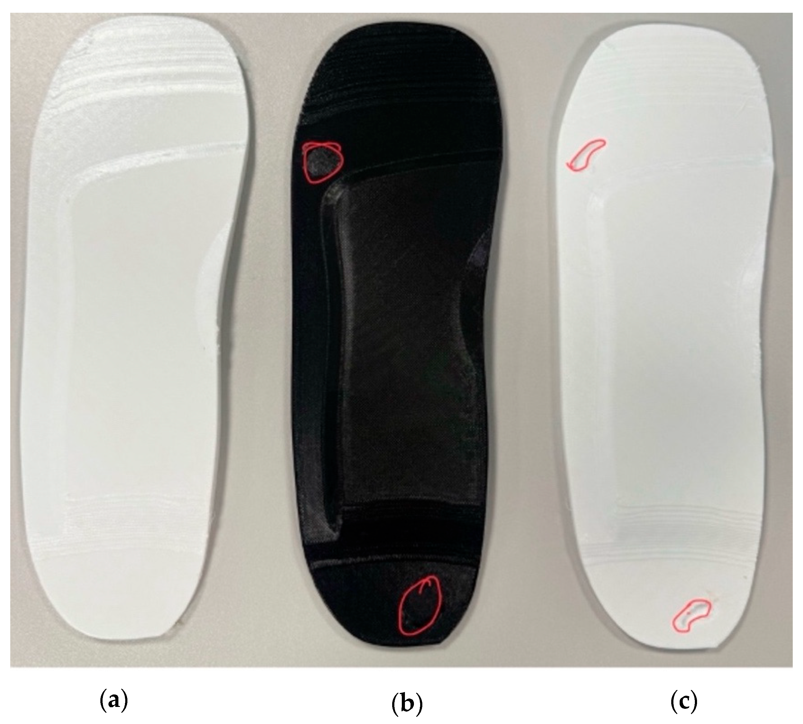 - Bose, D.; Singh, G.; Gupta, S.; Chanda, A. Development of a Novel Customized Insole for Effective Pressure Offloading in Diabetic Patients. Prosthesis 2024, 6, 341–356. [Google Scholar] [CrossRef]
