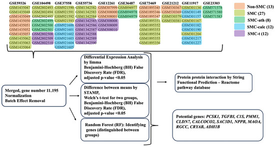 | GSM301134, GSM301167, GSM301204 | SMC | GSE11917 | GPL570 | 54675 | [29] |
