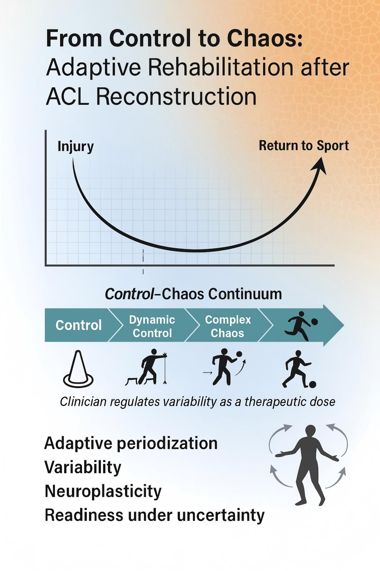 This conceptual perspective synthesizes prior models from complexity science, ecological dynamics, and sports rehabilitation to advance a unified clinical framework for ACLR. Our objective is to (i) define a common language for clinicians around control, variability, entropy, and the “edge of chaos”; (ii) operationalize the Control–Chaos Continuum through adaptive periodization and task representativeness; and (iii) provide practice-oriented principles that support non-linear decision-making and safer return-to-sport pathways.