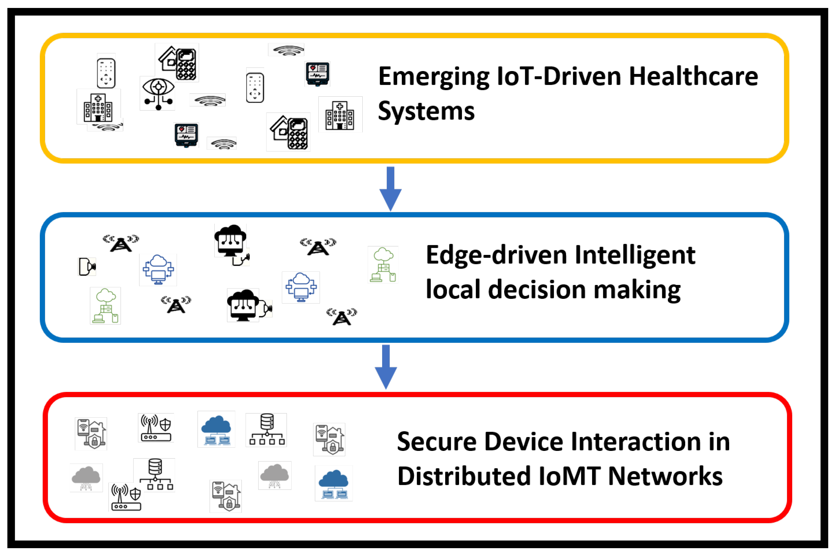 - Edge computing is integrated for real-time processing and increases the scalability of the IoMT network while reducing congestion among health devices, and improves the responsiveness of the system in critical conditions.
