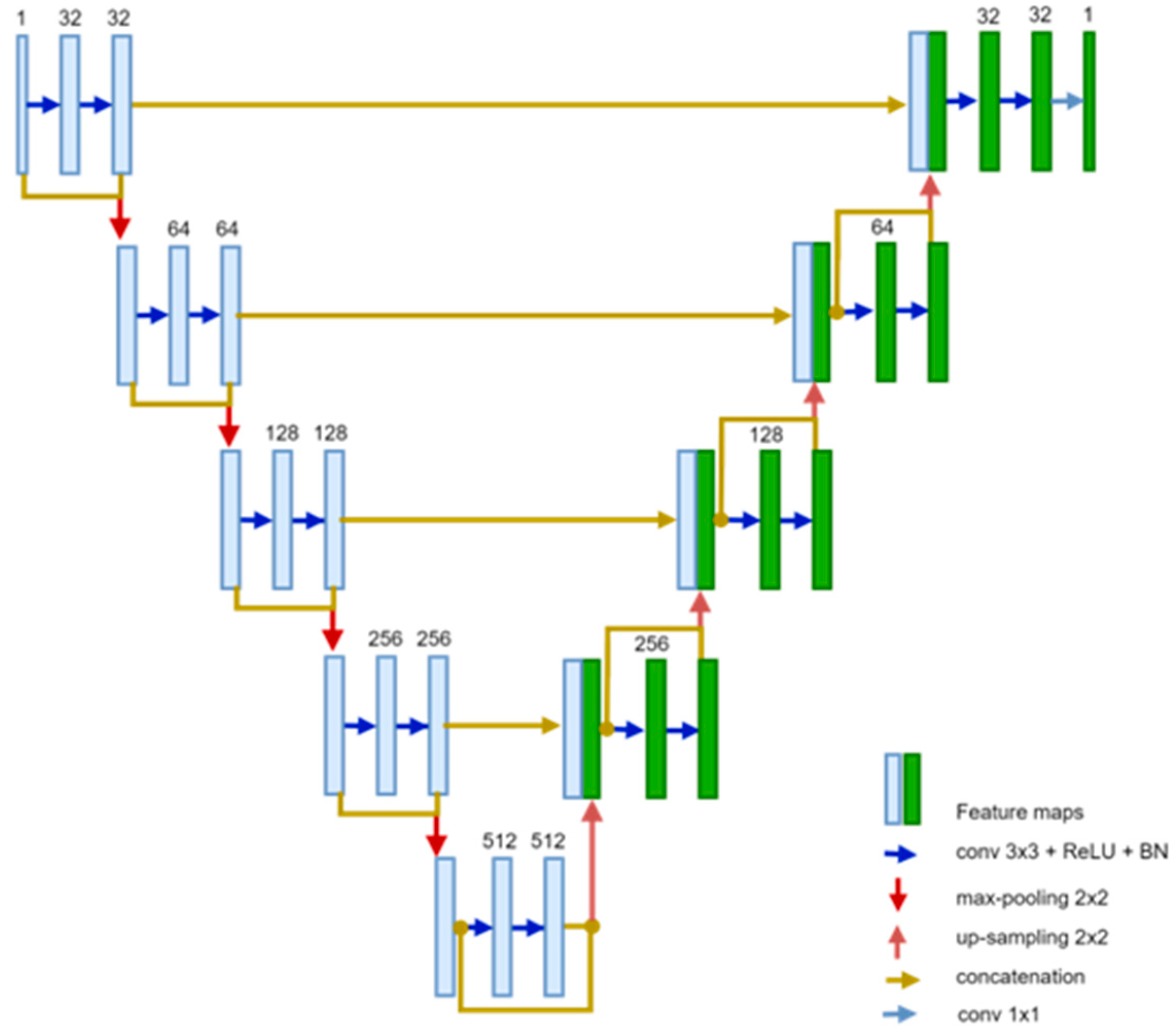 All U-Net variants in this study employ a symmetric encoder–decoder structure comprising four down-sampling and four up-sampling levels (five resolution scales in total). The number of feature channels doubles with each level (64, 128, 256, 512, and 1024), followed by transpose-convolution up-sampling and corresponding skip connections for feature fusion. The Residual U-Net introduces residual blocks at each level, resulting in approximately 32.46 million parameters. The Attention U-Net, which integrates spatial attention gates to emphasize salient regions, contains 31.16 million parameters. The UNet++ architecture incorporates nested dense skip connections and deep supervision, increasing the parameter count to about 36.61 million. In comparison, the baseline U-Net includes roughly 31.03 million parameters. These details provide an objective basis for assessing model complexity and computational requirements across the different U-Net variants. The reader can find a visual representation of the U-Net, attention U-Net, and U-Net++ network architectures in Refs. [