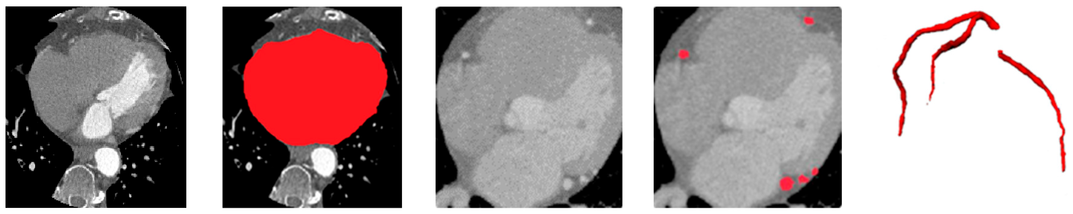 2.3. Segmentation of Heart and Coronary Arteries—Anatomical Prior Extraction