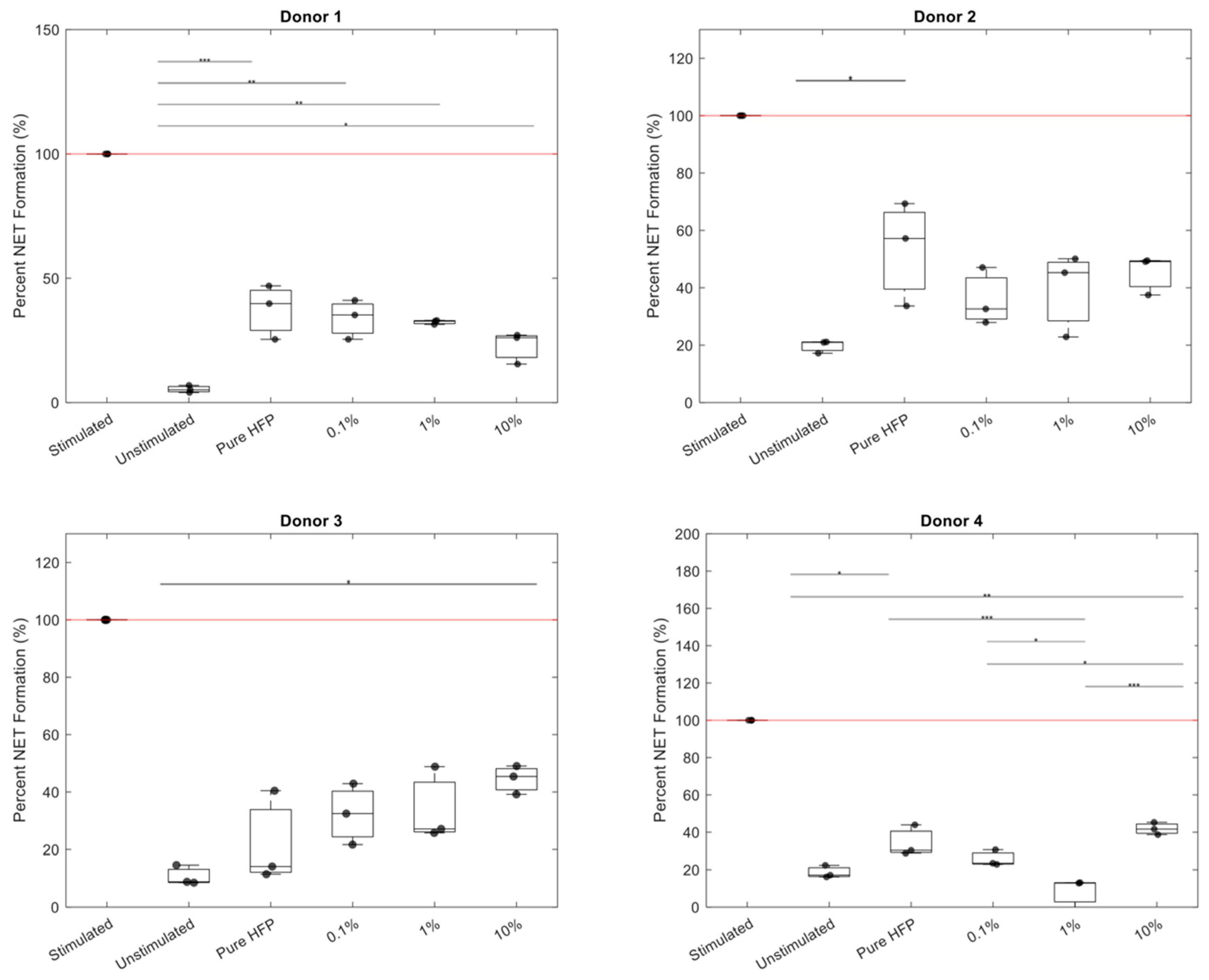 - Fetz, A.E.; King, W.E.; Minden-Birkenmaier, B.A.; Bowlin, G.L. Methods for Quantifying Neutrophil Extracellular Traps on Biomaterials. In Biomedical Engineering Technologies; Methods in Molecular Biology; Rasooly, A., Baker, H., Ossandon, M.R., Eds.; Springer Protocols: Berlin/Heidelberg, Germany, 2022; Volume 2394, pp. 727–742. [Google Scholar]