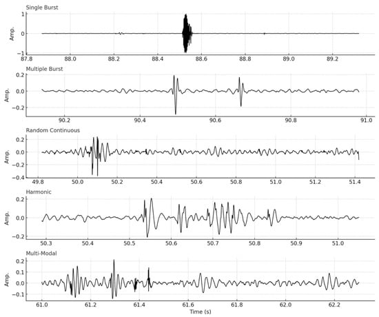 Table 2 summarizes the number of events, mean dwell times per cluster, and global inter-event gaps. Single-burst events exhibited the longest mean dwell duration (3.61 ± 2.50 s), while random continuous events were the most transient, with a mean dwell of only 0.08 ± 0.02 s. Harmonic and multi-modal states showed intermediate persistence (1.25 ± 0.33 s and 0.25 ± 0.08 s, respectively). Across all clusters, the mean inter-event gap between successive events was approximately 0.90 ± 0.46 s.