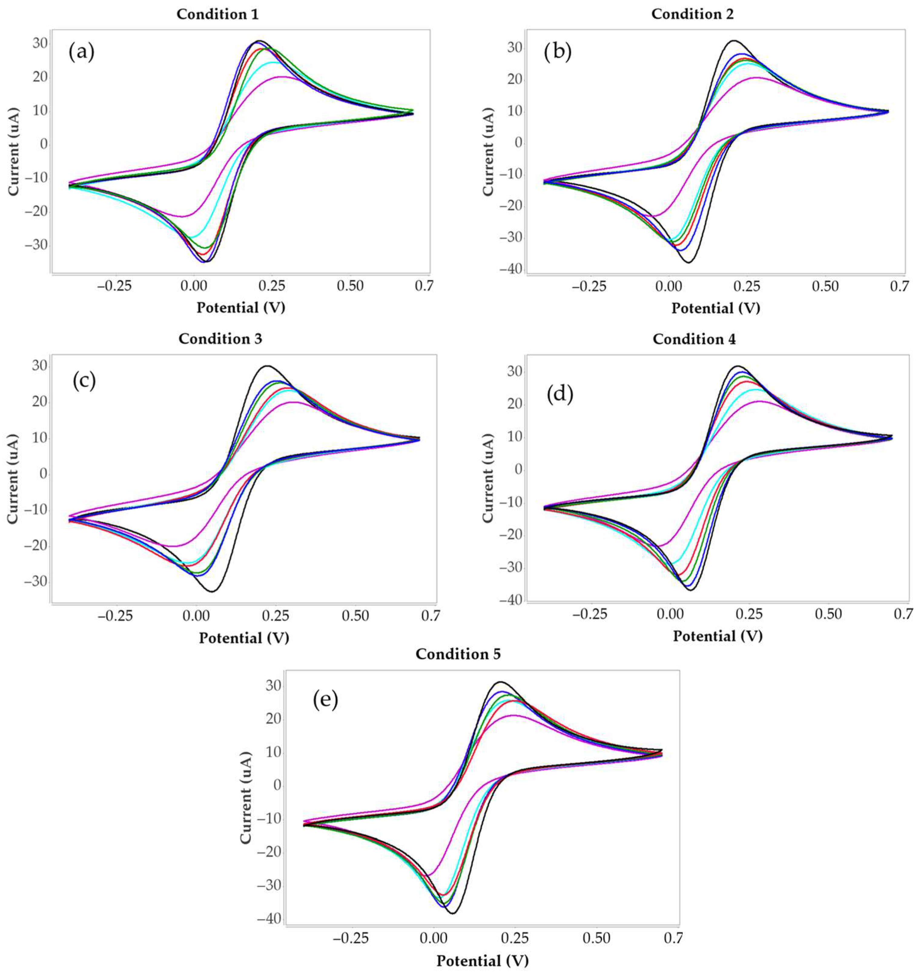 3.1. Cyclic Voltammogram of Carbon Electrode