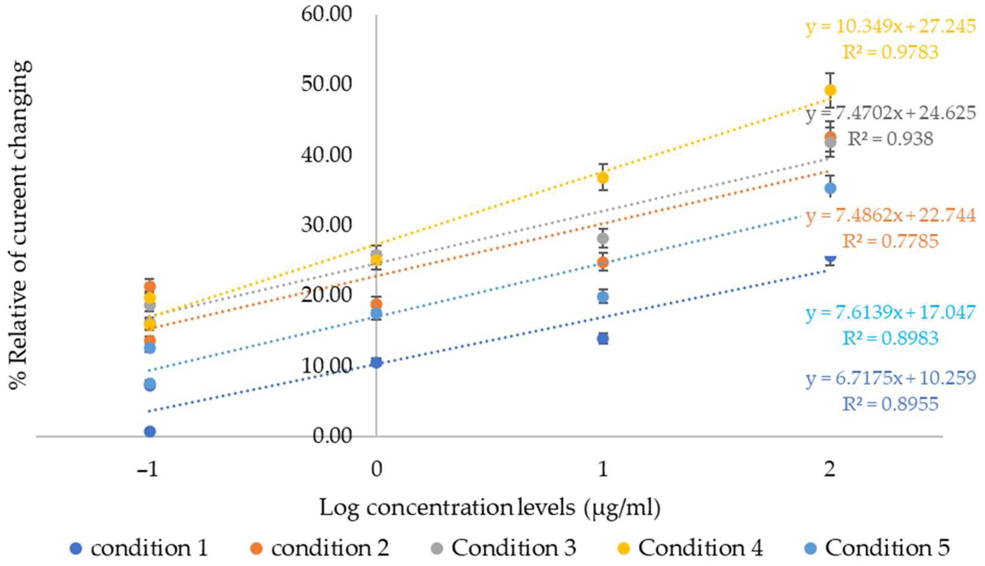 | Condition 5 | Current (µA) | ∆I (µA) | % Current changing |