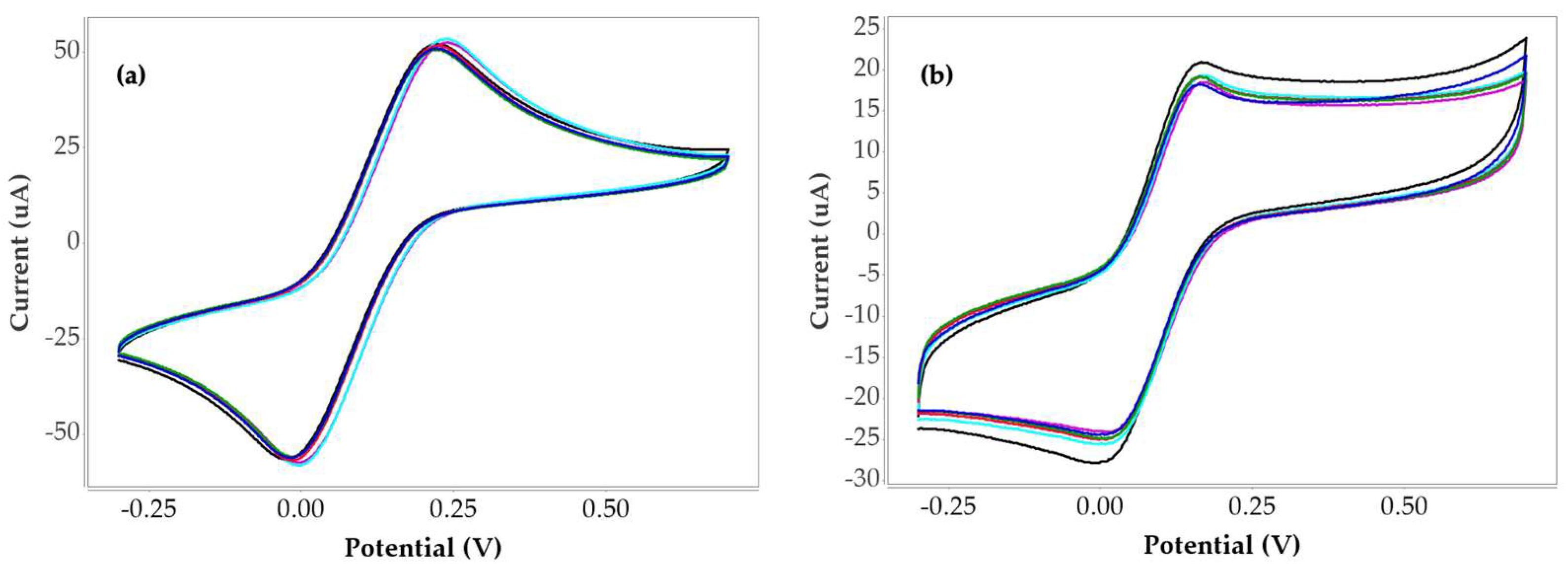 - Baseline Establishment: Initial CV scans were carried out on blank electrodes to determine background current levels.