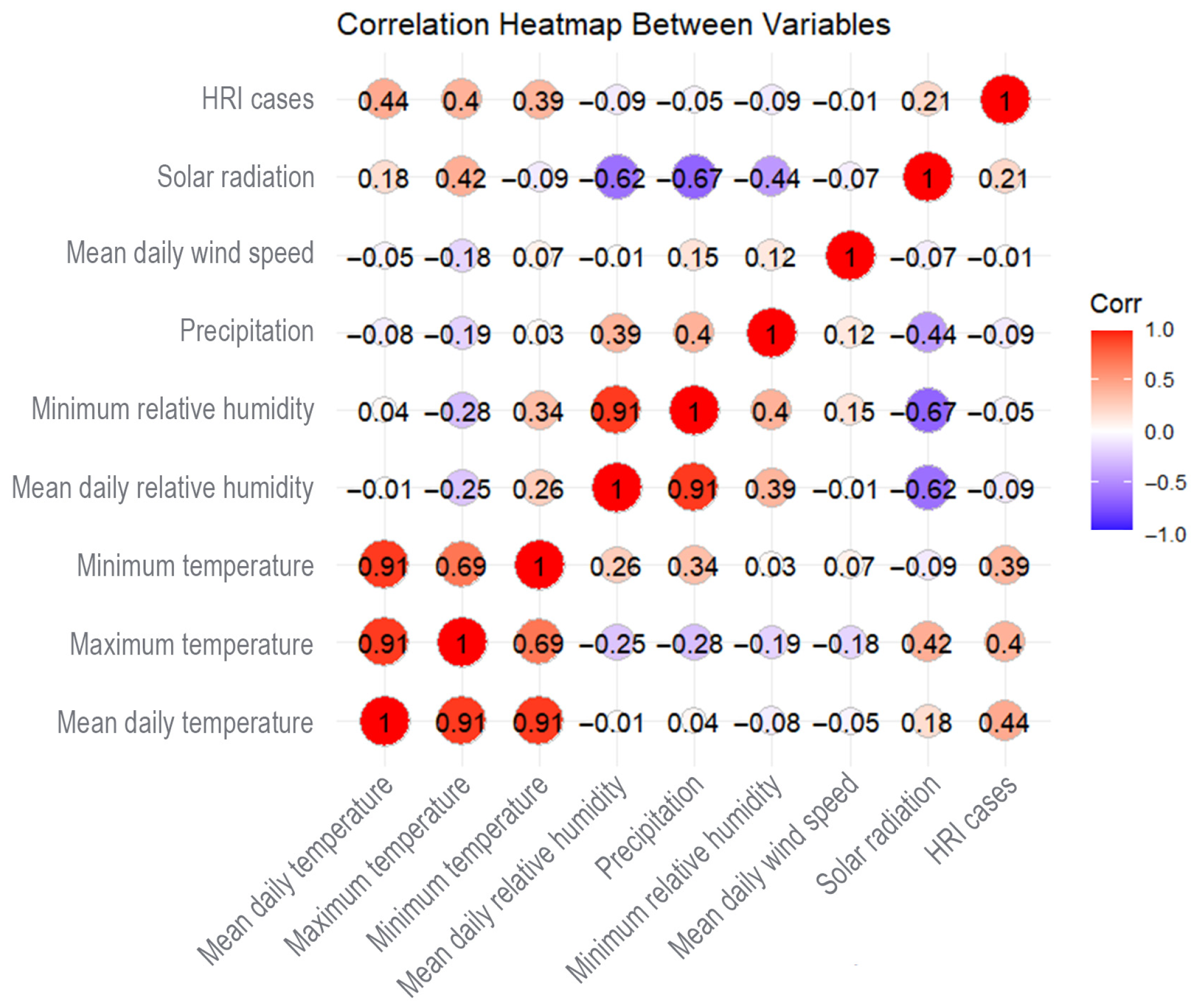 - Xu, H.; Guo, S.; Shi, X.; Wu, Y.; Pan, J.; Gao, H.; Tang, Y.; Han, A. Machine Learning-Based Analysis and Prediction of Meteorological Factors and Urban Heatstroke Diseases. Front. Public Health 2024, 12, 1420608. [Google Scholar] [CrossRef]