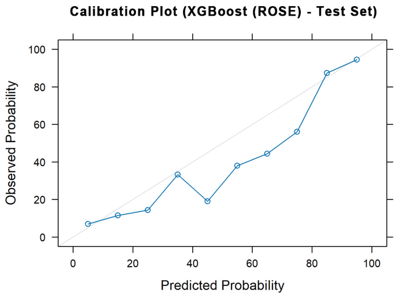 - Synthetic oversampling using the ROSE algorithm, which generates balanced synthetic samples via smoothed bootstrapping.