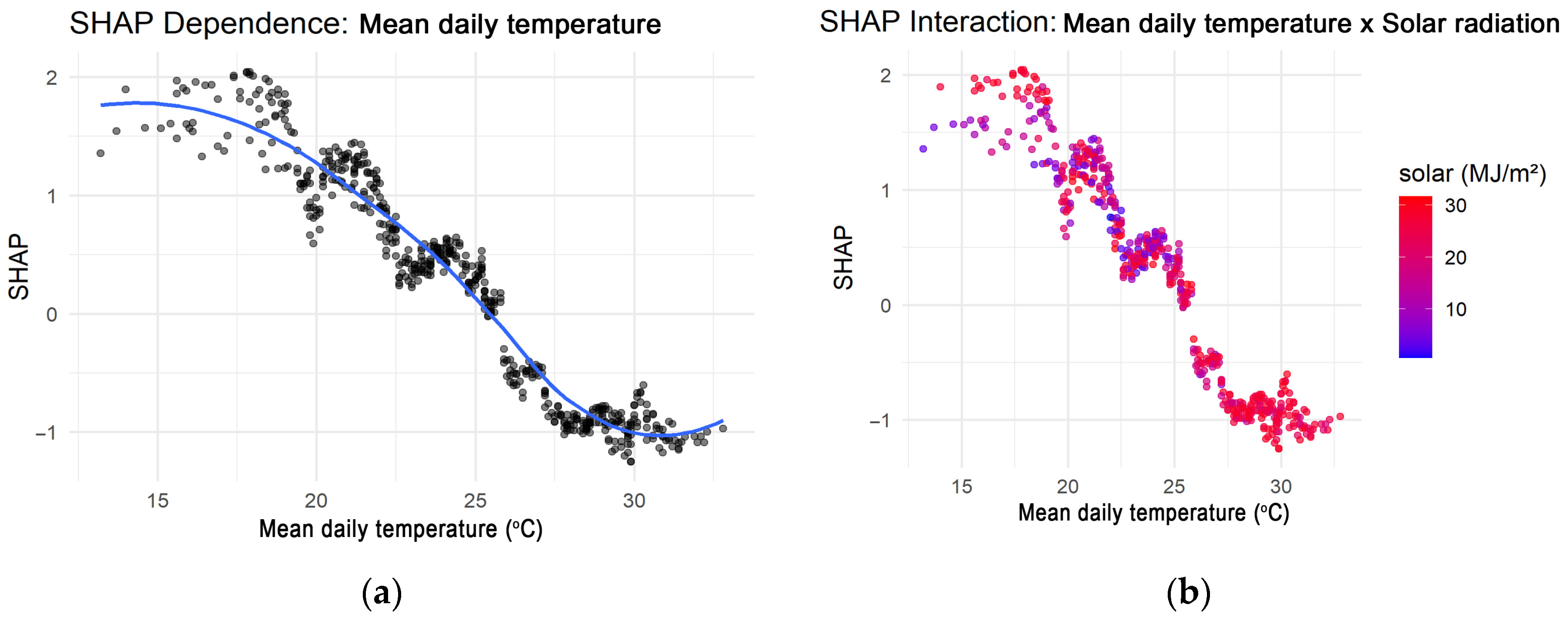 - Kim, Y.; Kim, Y. Explainable Heat-Related Mortality with Random Forest and SHapley Additive exPlanations (SHAP) Models. Sustain. Cities Soc. 2022, 79, 103677. [Google Scholar] [CrossRef]