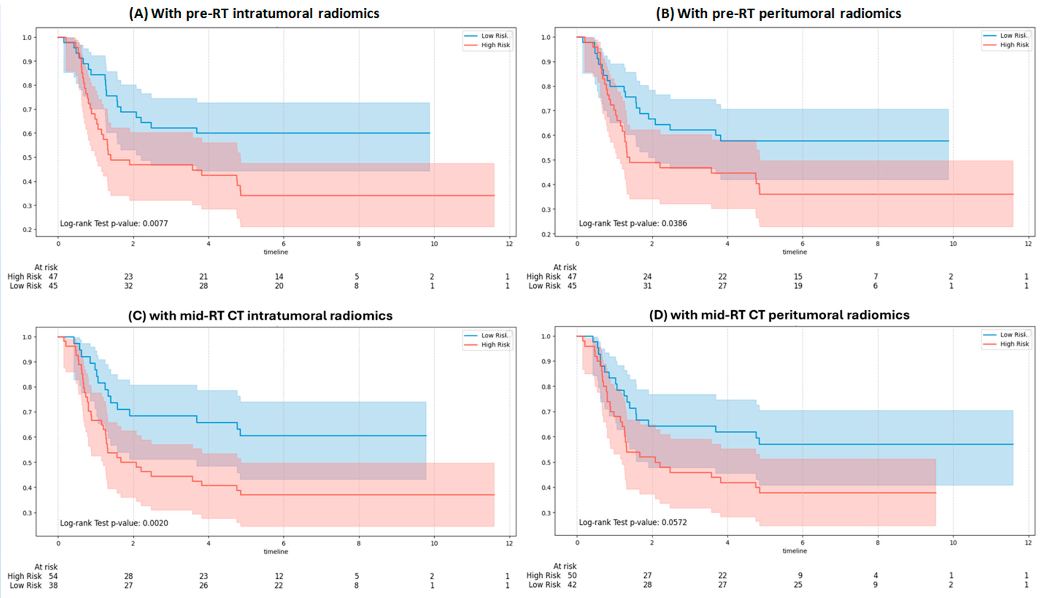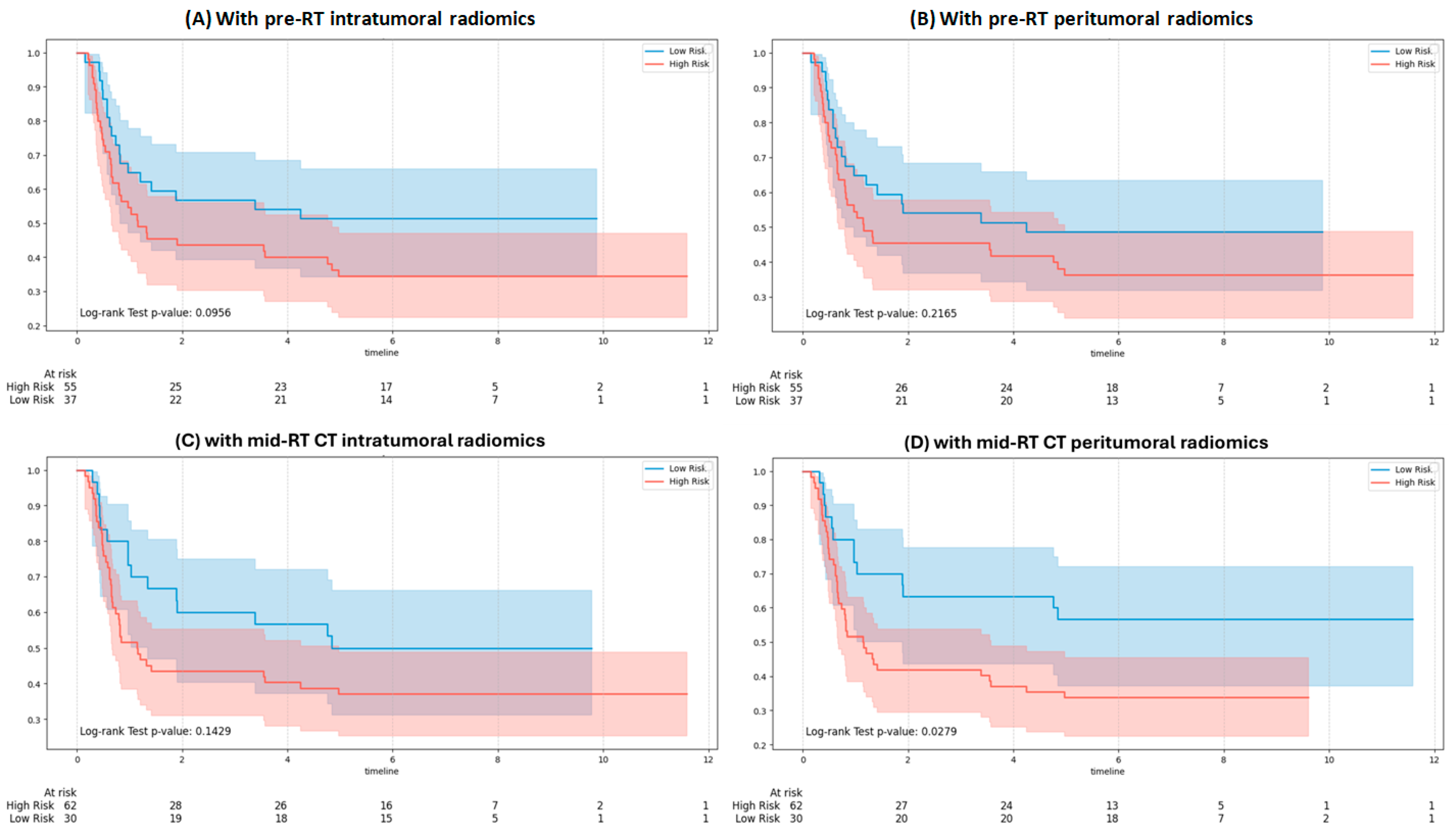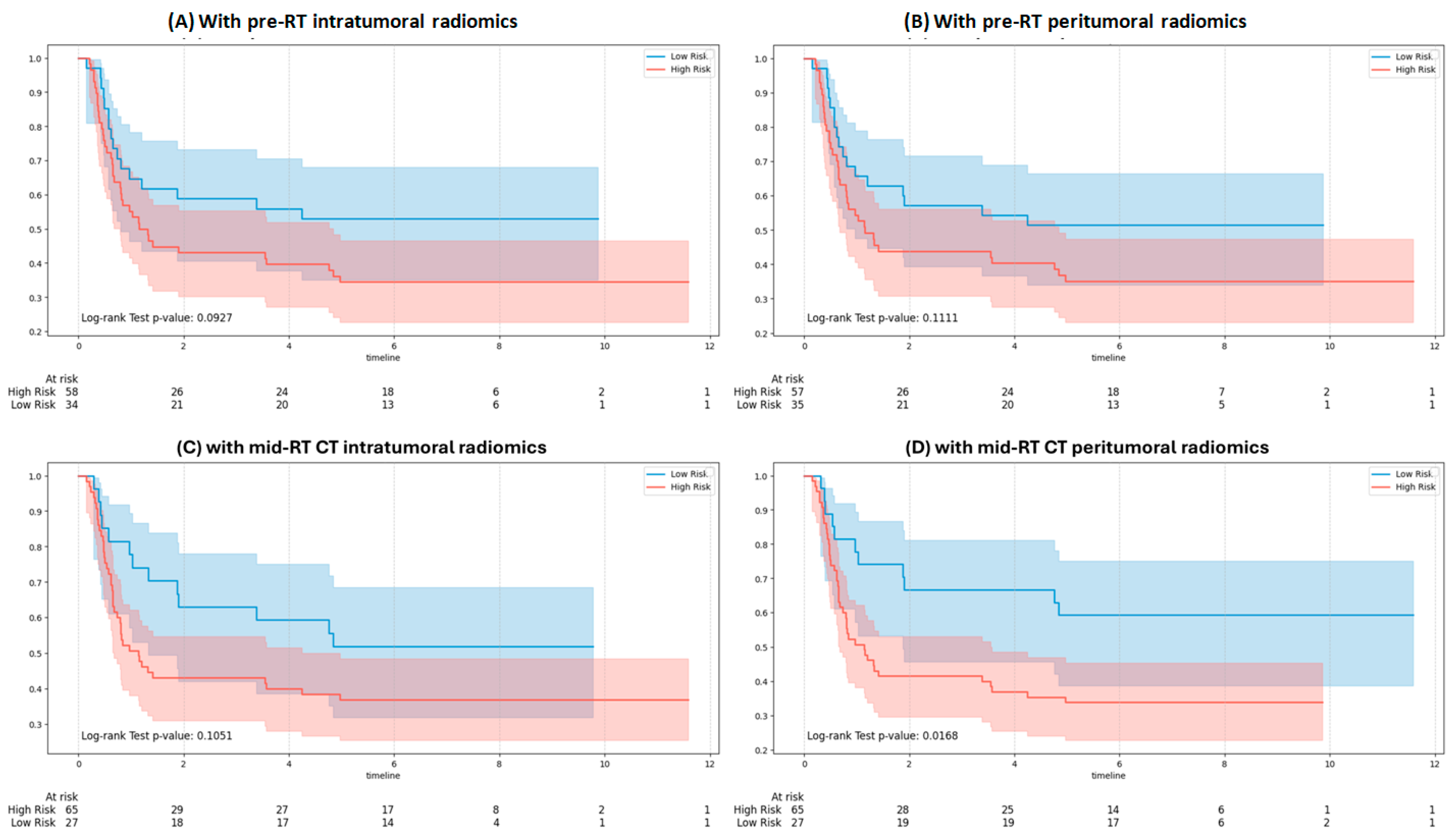 - Combined with pre-RT intratumoral radiomic features to predict the outcome of death(−), recurrence(−), and metastasis(−):
