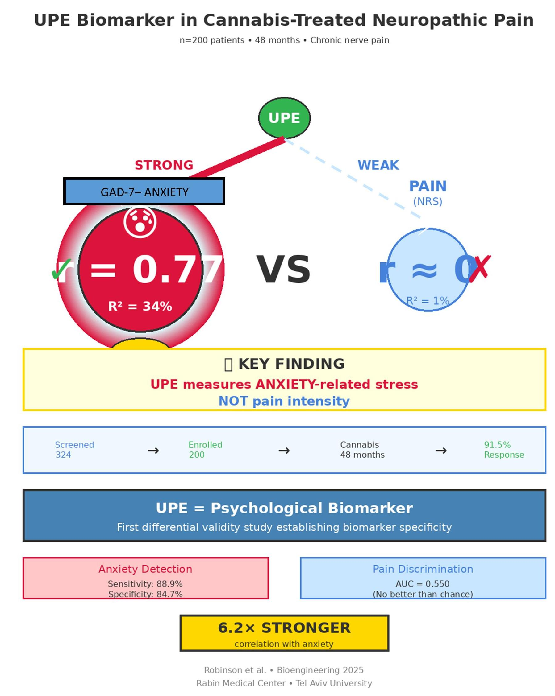 Yassin, M.; Robinson, D.; Khatib, M.; Murad, H.; Qawasme, F.; Lavon, E. Ultra-Weak Photon Emission Demonstrates Specificity for Anxiety over Pain in Cannabis-Treated Chronic Neuropathic Pain: A Biomarker Validation Study. Bioengineering 2025, 12, 1359. https://doi.org/10.3390/bioengineering12121359