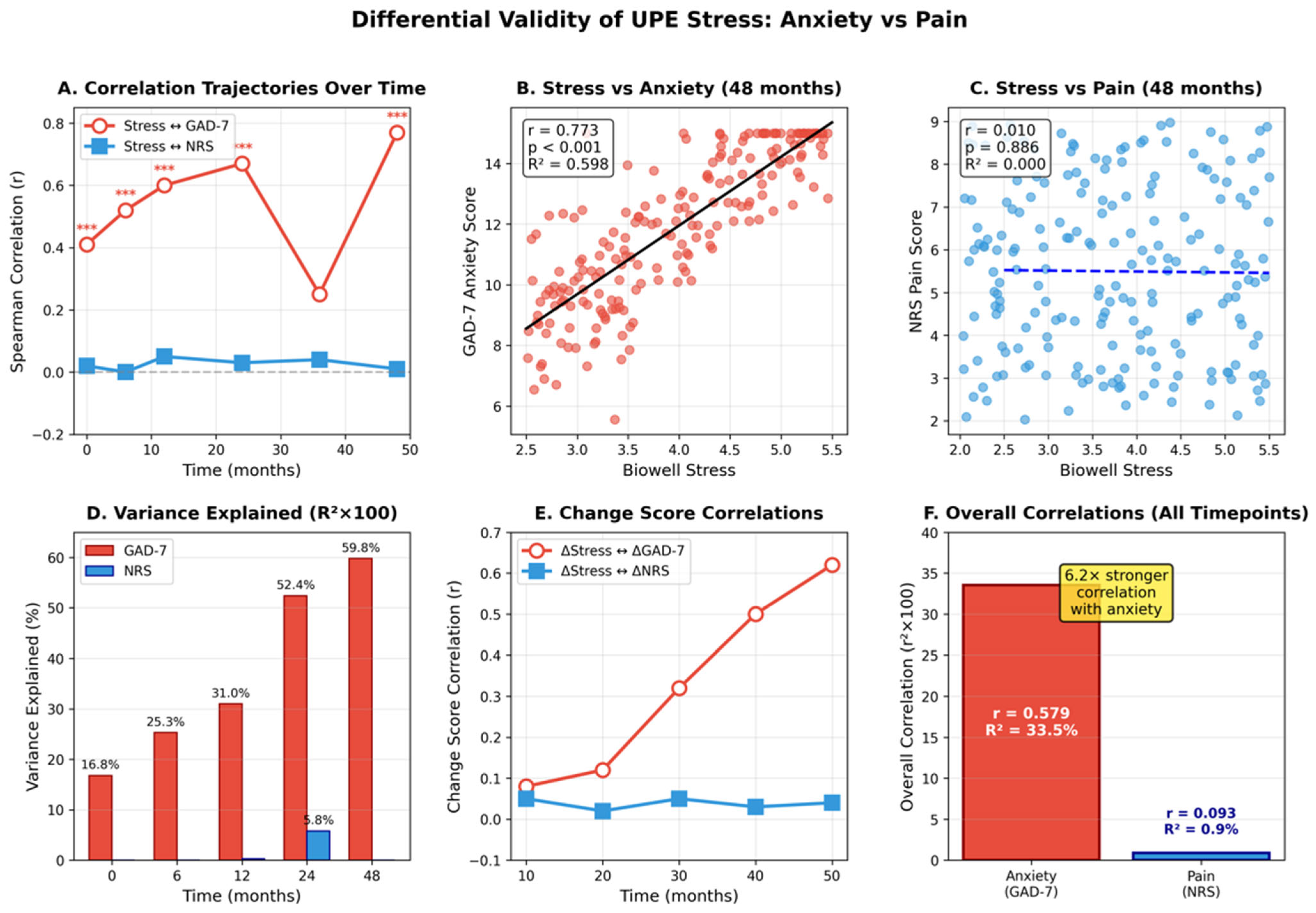 - Differential validity: Fisher r-to-z transformation comparing anxiety versus pain correlations.