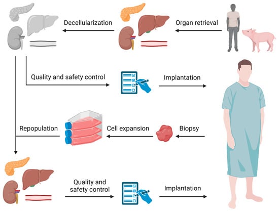 - Khan, A.A.; Vishwakarma, S.K.; Bardia, A.; Venkateshwarulu, J. Repopulation of decellularized whole organ scaffold using stem cells: An emerging technology for the development of neo-organ. J. Artif. Organs 2014, 17, 291–300. [Google Scholar] [CrossRef] [PubMed]