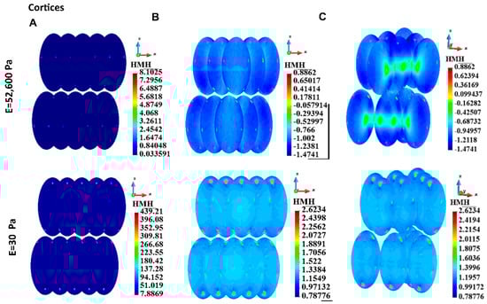 Maximum HMH stress in cortices.