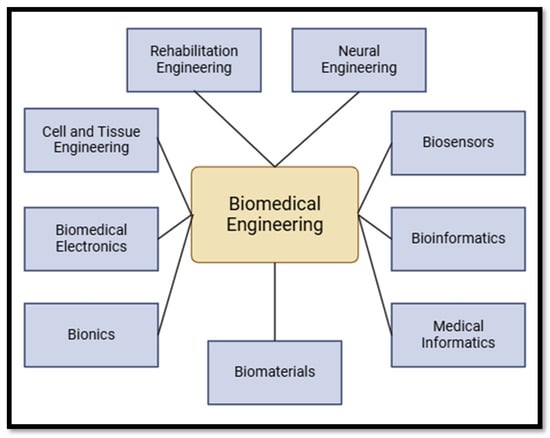 Secondly, AI-enabled household and wearable devices (known as “Telehealth”) have widened access to care for elderly and differently abled people. They facilitate remote monitoring of health metrics, from dietary consumption to mental health [9]. The same technologies are present in the area of fitness and sports, known as ‘Smart Fitness’, where watches track bodily activity and health metrics [10]. Figure 1 shows multiple domains of biomedical engineering in healthcare.