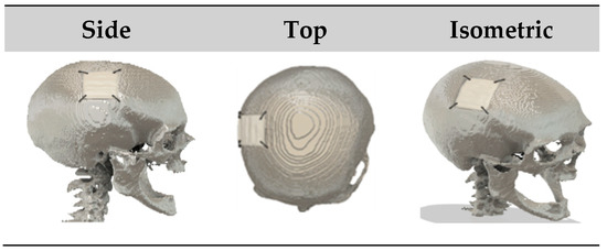 - Bogu, V.P.; Kumar, Y.R.; Khanara, A.K. Modelling and structural analysis of skull/cranial implant: Beyond midline deformities. Acta Bioeng. Biomech. 2017, 19, 125–131. [Google Scholar] [CrossRef]