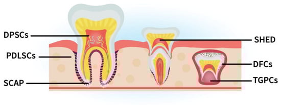 - Xuan, K.; Li, B.; Guo, H.; Sun, W.; Kou, X.; He, X.; Zhang, Y.; Sun, J.; Liu, A.; Liao, L. Deciduous autologous tooth stem cells regenerate dental pulp after implantation into injured teeth. Sci. Transl. Med. 2018, 10, eaaf3227. [Google Scholar] [CrossRef]