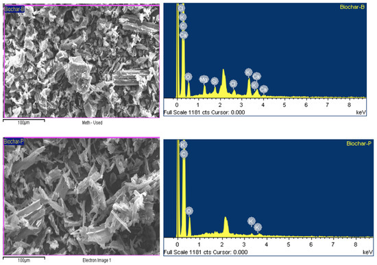 SEM/EDX of bamboo biochar (biochar-B) and pine biochar (Biochar-P).