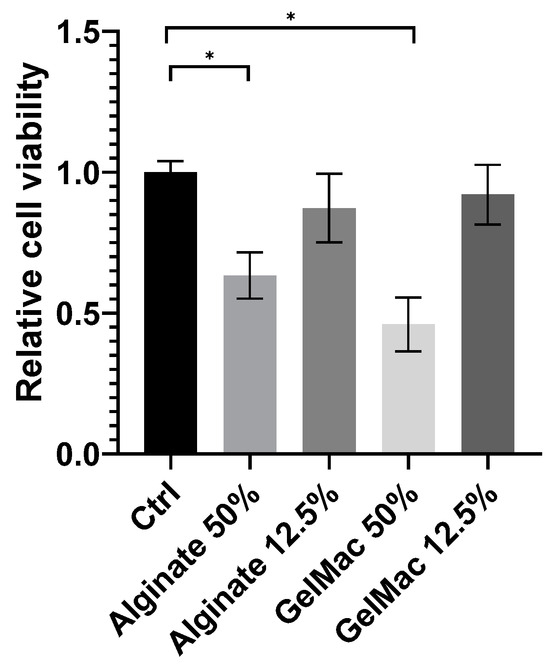 3.6. Comparison of Alginate and GelMa C Scaffolds