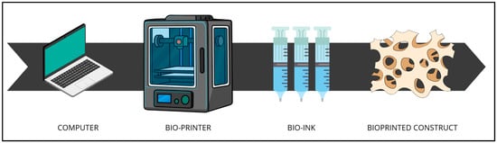 A schematic representation of the key elements needed for bioprinting. Considering the multiple steps and processes, one understands the need for a multidisciplinary team consisting of physicians, engineers, biologists, and computer scientists [] (image created utilizing Canva®).