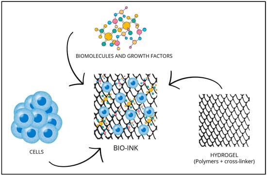 Bioinks are the raw materials required for making 3D bioprinting, they are a formulations of biomaterials and living cells. They are deposited by special machines layer by layer and are the basis for the fabrication of complex biological structures such as tissues and organs. These inks consist of living cells and biomaterials, potentially hydrogels, liquid biomaterials consisting of polymers that can form a three-dimensional network with supporting functions. In addition, within these inks are biomolecules and growth factors that are essential for the growth and survival of the living cells they contain. They are, therefore, made up of different biomaterials in order to keep the cells united and encapsulated and retain the biomolecules. The bioinks are characterized by different properties including physical, rheological, mechanical, and biological ones [,].