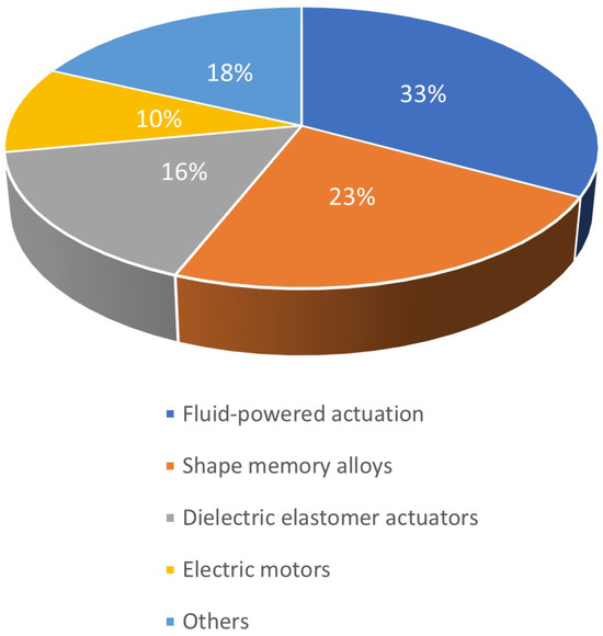 The percentage of the number of research articles with different actuation mechanisms applied in soft robotic devices for rehabilitation as of November 2021 [7].