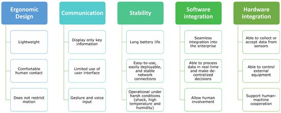 Based on the feedback from users of assistive wearable devices, five critical factors are highlighted in Figure 3.