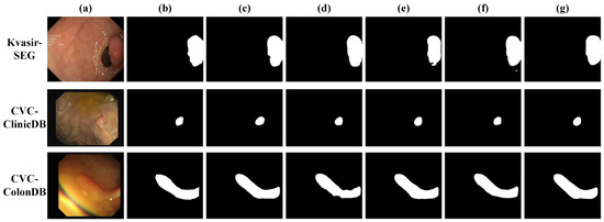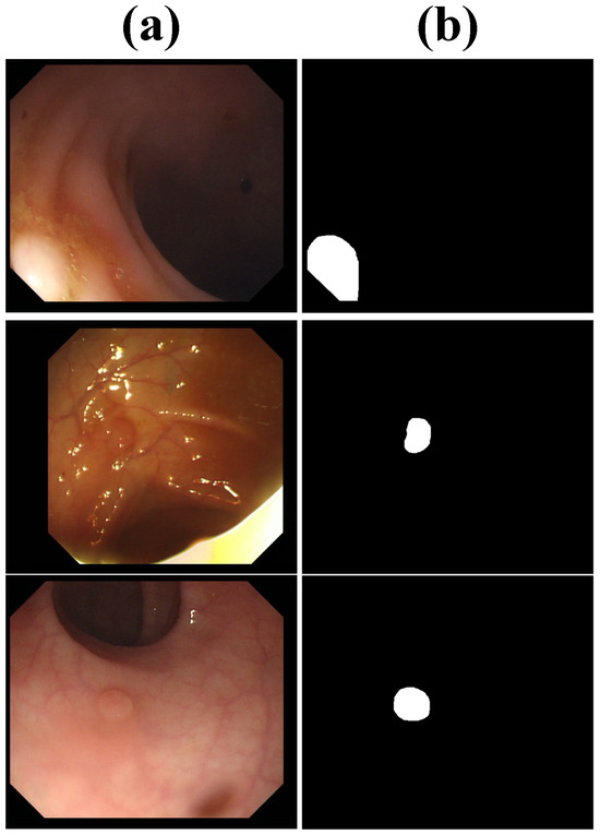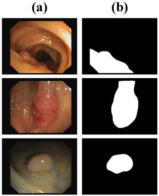 - Jha, D.; Smedsrud, P.H.; Riegler, M.A.; Halvorsen, P.; De Lange, T.; Johansen, D.; Johansen, H.D. Kvasir-seg: A segmented polyp dataset. In Proceedings of the MultiMedia Modeling: 26th International Conference, MMM 2020, Daejeon, Republic of Korea, 5–8 January 2020; Proceedings, Part II 26. Springer: Berlin/Heidelberg, Germany, 2020; pp. 451–462. [Google Scholar]