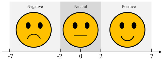 The selection of emotion induction materials is a crucial aspect of experimental design. This study integrates video and odor stimuli as multisensory emotional triggers to enhance the effectiveness of emotion induction. It is important to note that emotions are complex and subjective, and there are often no clear boundaries between similar emotional states, such as “disgust” and “revulsion”, or “excitement” and “happiness”. Additionally, individuals may exhibit varying emotional responses to the same stimulus, though their reactions generally fall within a similar emotional range. Therefore, in both the selection of emotion induction materials and the assessment of subject feedback, this study employs the valence dimension as the classification criterion, categorizing emotional states into three primary groups: positive, neutral, and negative. The subjective evaluation scale for valence dimension is illustrated in Figure 1.