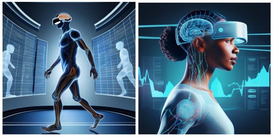 The scientific contribution of Daşdemir et al. [89] explored various locomotion techniques, presenting a dataset named VREEG (https://eegdatasets.erzurum.edu.tr/Home/VREEG, accessed on 7 January 2025) collected for this purpose. This study focused on predicting the physical and psychological effects of virtual reality locomotion, such as cybersickness (CS), eyestrain, disorientation, and psychological issues like addiction or detachment from reality. Thirty-two participants were involved, completing ten different locomotion techniques in VR. The study utilized both objective and subjective measures to assess physiological responses, usability, and cybersickness. A predictive model was developed using EEG features extracted from the time, frequency, and time–frequency domains. This model achieved 99% accuracy in predicting nausea, oculomotor issues, and disorientation levels among the participants. The study also highlighted the effectiveness of teleportation techniques (such as shift and blink locomotion), which resulted in fast transitions and lower levels of cybersickness. These findings are significant for understanding the potential risks of VR locomotion and offer insights into how to mitigate these risks while optimizing the benefits of VR technology.