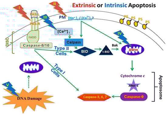 The induction of apoptosis (programmed cell death) through electric pulses represents an innovative approach to cancer treatment without the use of cytotoxic drugs. This method involves the application of nanosecond pulsed electric fields (nsPEFs) directly to cancer cells. This approach is a part of new cancer therapies aimed at minimizing the side effects of pharmacological treatments while maximizing efficacy against tumor cells (Figure 1) [21].
