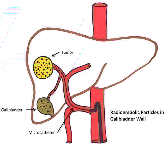 Diagrammatic depiction of abnormal microsphere accumulation on the gallbladder wall [98].