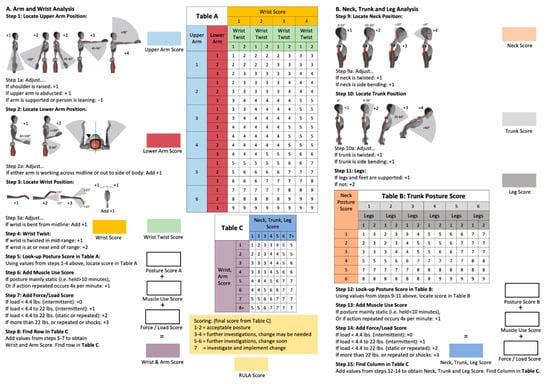 Assessment of posture and ergonomic stress using the RULA worksheet [18].