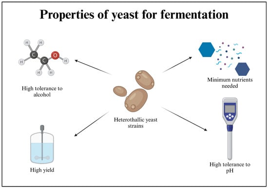 Properties that yeast should have for fermentation: Yeast should have a high tolerance to alcohol to produce a high amount, which will not be toxic for the yeast itself. It should grow in minimal and cost-effective nutrients. It should have a high production capacity and be tolerant of minor changes in the pH, as it can affect the yield.