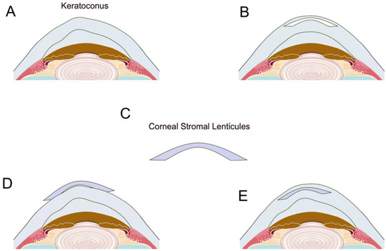 - Liu, Y.; He, Y.; Deng, Y.; Wang, L. Lenticule addition keratoplasty for the treatment of keratoconus: A systematic review and critical considerations. Indian J. Ophthalmol. 2024, 72, 167–175. [Google Scholar] [CrossRef]