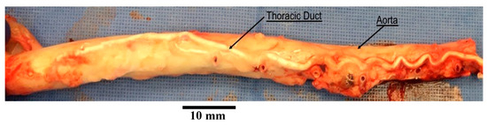 - Lu, X.; Wang, M.; Han, L.; Krieger, J.; Noblet, J.; Chambers, S.; Itkin, M.; Kassab, G.S. Morphometry and Lymph Dynamics of Swine Thoracic Duct. Lymphat. Res. Biol. 2020, 18, 406–415. [Google Scholar]