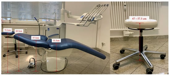 The dental profession involves significant physical exertion and a prolonged nature of work, rendering dental professionals particularly susceptible to musculoskeletal disorders (MSDs) [1,2]. The prevalence of MSDs among dentists is notably higher than that in the general population, with the neck, shoulders, and back being the most commonly affected regions [1,3]. This issue is especially pronounced among dental, dental hygiene, and dental assistant students, who spend extended hours in pre-clinical laboratories practicing on phantom heads [2]. Various factors contribute to poor posture in this context, including the need to coordinate movements with assistants for a smooth workflow, to contort their bodies for an optimal intraoral view, and to ensure patient comfort, which often requires adopting non-ergonomic positions [2,4]. Continuous strain on the joints in one direction may cause muscle imbalances or structural tissue damage, ultimately leading to lower back pain [2,5]. Dental hygienists and assistants, normally positioned on the left side of the patient, assume responsibility for suction and holding tasks, which are typically performed while seated. They are exposed to high postural loads owing to the large amount of static and holding work [6]. Therefore, ergonomic work plays a crucial role in their professional life [2,4]. In particular, students have their entire professional lives ahead, indicating that significant health benefits may be created through guided training at a young professional age. Furthermore, institutions are expected to intervene by implementing ergonomic practices to benefit their students [2].