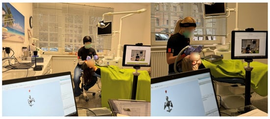 Additional images from both planes and time-continuous video-based joint angles over experimental tasks and longer work processes should be integrated into RULA by pose estimation to further increase the reliability of this technology and the detection of subtle movements, e.g., trunk and wrist. A technical solution for estimating transversal angles must be found to obtain an automated posture score. Furthermore, the paper-and-pencil RULA method should be incorporated into study designs to compare results from pose estimation and traditional observations [15]. In addition, male student participants should be included in future studies to determine potential sex-based differences in results. Finally, the potential influence of adding a dentist to the experimental task on the working process of the dental assistant students cannot be ruled out. A particular issue arises from the difference in height between the dentist and the dental assistant—typically, the dentist adjusts the treatment chair to an ergonomically favorable height, while the dental assistant remains standing. This should also be considered in future studies.
